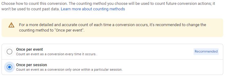 If you’re comparing conversions between GA4 vs. GA3, you may notice that GA4 is reporting a higher number. This is partially because all conversions within GA4 are events and are defaulted to count “every” event versus each unique event. Recently Google rolled out the option to change the counting method to “once per session” for events marked as conversions which we recommend switching to for most sites. If you do not switch to this counting method, we recommend you analyze conversion volume by analyzing sessions where a conversion event occurred (filtering for event name), rather than relying on the “conversion” metric, to assure you are analyzing unique conversions.